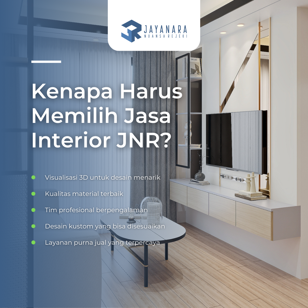 Kami mendirikan perusahaan PT Jayanara Nuansa Rejeki yang disingkat JNR dan mengembangkan usaha dibidang jasa desain interior juga renovasi, Kami berpengalaman dibidang jasa interior dengan mendesain hunian atau tempat usaha anda. Dengan pengalaman dan keahlian yang kami miliki, kami akan memberikan pengalaman design hunian / usaha Anda yang dipenuhi kreatifitas tanpa batas, Dengan menggunakan teknologi yang selalu up to date, kami akan mewujudkan mimpi dan keinginanAnda.